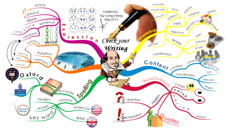 - اجعل لكل فكرة فرعًا من منتصف الصفحة (عنوان الدرس)، وكلمة إفتتاحية تدل عليها، واستخدم هنا الألوان والرسومات المرتبطة بالفكرة، لتمييز كل واحدة من الأفكار على حده، واجعل الأفكار تتدفق من عقلك ولا تجعل لها قيودًا.